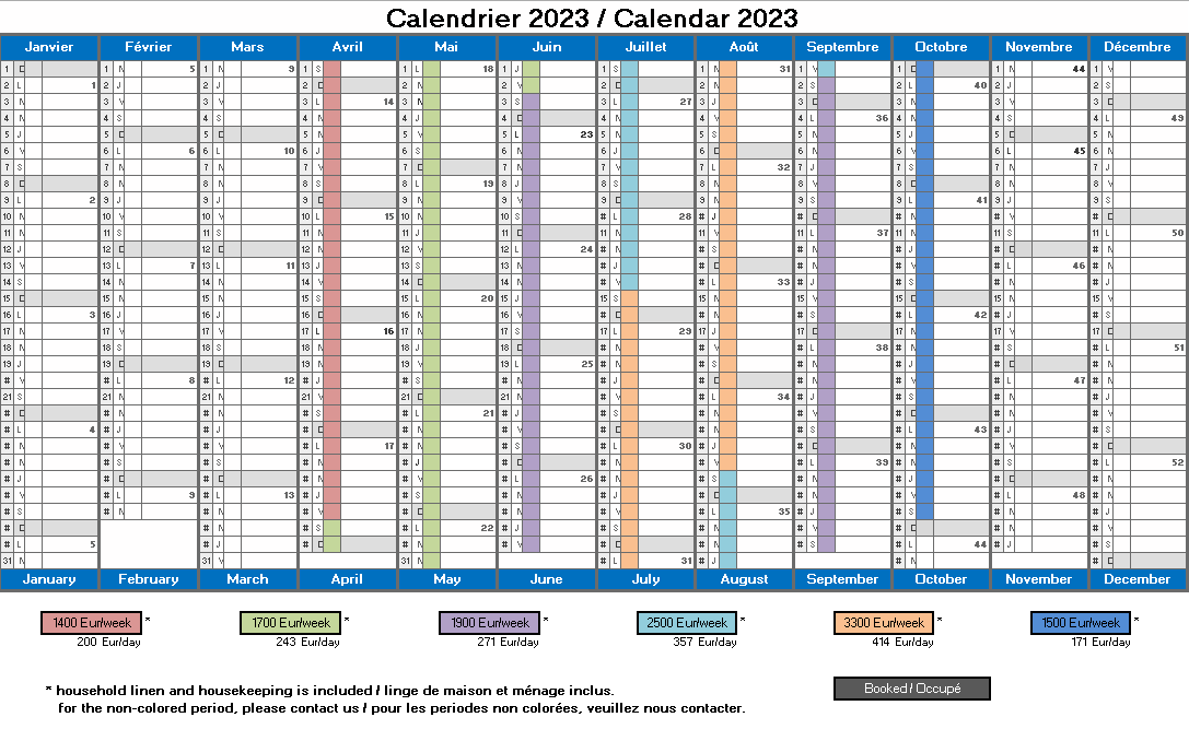 Tarifs & Calendrier